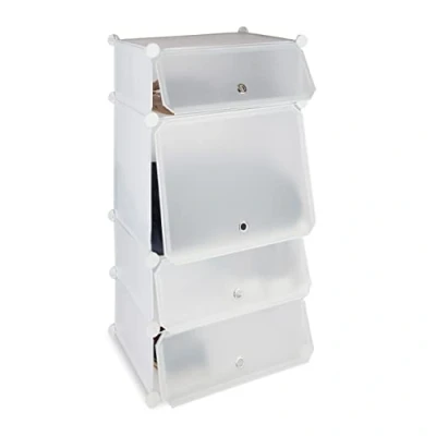 Relaxdays Plastic Shoe Cabinet, 4 Compartment Rack, Modular Shelf, H x W D: 91 49 36.5 cm, White