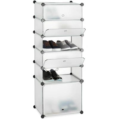 Relaxdays Plastic Shoe Cabinet, Modular Shelving System with 6 Compartments and Doors, DIY, HWD 52 x 37 9 cm, Transparent