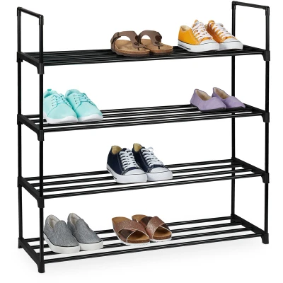 Relaxdays plug rack, metal organiser, shoe storage, 4 tiers for 16 pairs, 91,5 x 90,5 30,5 cm, black, Steel
