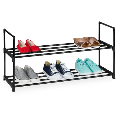 Relaxdays plug rack, metal organiser, storage, 2 tiers for 8 pairs of shoes, 5 x 30,5, black, Steel, 45 90,5 30,5 cm