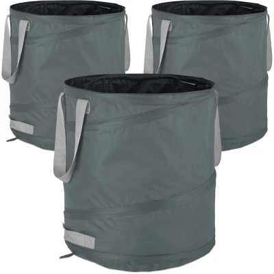 Relaxdays Pop Up Garden Waste Bags, Set of 3, 85 L, Outdoor Refuse Sacks, 3 Handles, UV Resistant, Waterproof, Grey