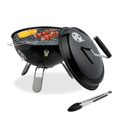 AmazonDelicious: Barbecue with a secure lid for direct and indirect grilling - for tasty meals Portable: The kettle grill has a handle for carrying - For the garden, balcony, park, camping etc. Well-designed: Picnic barbecue with insertable charcoal tray - Easy to clean - Includes tongs Hot: Air intake and exhaust regulator for quick heating - portable grill with stainless steel grate Details: Kettle bbq with large grilling area - Diameter: 34 cm - Height without lid: 27 cm