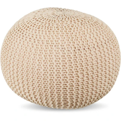 AmazonStylish: pouffe as a flexible addition to bedrooms and living rooms – adds decorative flair Design: Round pouf with knitted cotton cover in beige – elegant boho look as a focal point Versatile: Can be used as extra seating or as a footrest in front of your sofa or chair Comfortable: Knitted pouffe with polystyrene beads - Enjoyable seating - Retains its shape well Details: Pouf dimensions H x D: approx. 33 x 46 cm - Lightweight for easy repositioning