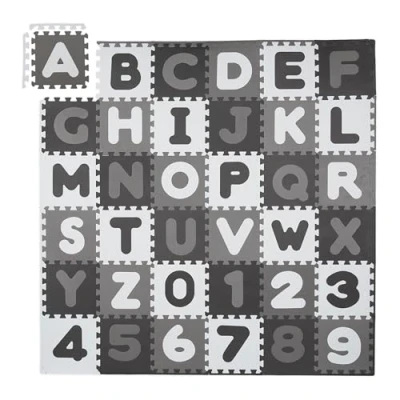 Amazon MarketplaceSuitable for children: 36 puzzle mats for babies and children - for puzzles and games Basics: 60 pcs. Play mat with border - Each mat WxD: approx. 30 x 30 cm - WxD: approx. 172 x 172 cm Safe: Soft letter mat made of foam and PE - Free of BPA - For safe play fun Durable: Shock-absorbing tiles -with water-repellent characteristics - Protects from cold floors Motif: Children's mat in white and grey with numbers and letters - Learning the alphabet