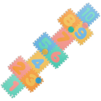 AmazonSuitable for kids: Puzzle mat for babies and children - For puzzles and playing or as a crawling mat Safe: Soft children's puzzle crawling mat is made of non-toxic EVA foam - For safe play experience Fun to play: number mat for playing heaven and hell - dimensions of the game HxW: approx. 58 x 198cm Motif: Children's mat in bright colours with numbers 1 to 10 - So learning to count is child's play Details: 21-piece play mat with 4 throwing discs - Each square floor mat HxW: approx. 30 x 30 cm