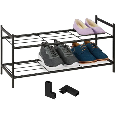 Relaxdays Rack 2 Levels, Plastic Connectors, 6 Pairs, Shoes Storage, 33.5 x 70 26 cm Stackable, Stable, Black, Iron