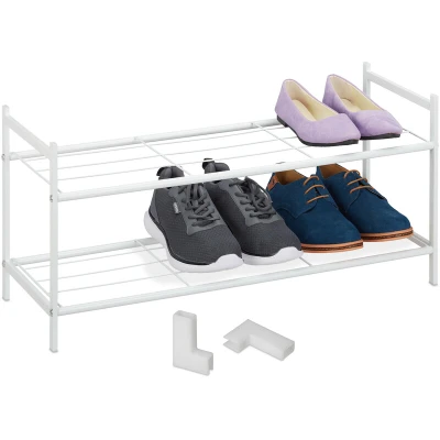 Relaxdays Rack 2 Levels, Plastic Connectors, 6 Pairs, Shoes Storage, 33.5 x 70 26 cm Stackable, Stable, White, Iron