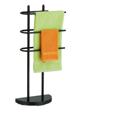 AmazonDesign: Towel rack with 3 bars in different heights - For small and large towels Modern: Metal towel rack in plain black - Quick and effortless to assemble without drilling Versatile: Ideal for drying hand and shower towels in the bathroom or for clothes in the bedroom Free-standing: Freely positionable stand-up towel rack - Heavy base ensures secure footing Details: Bath towel rack dimensions H x W x D: approx. 83 x 39 x 18 cm - Total load: approx. 1 kg