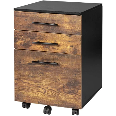 AmazonOrganisation: Industrial-style filing cabinet for storing documents in office or study Storage space: 3-drawer mobile cabinet – 1 drawer with hanging files for Letter and A4 Mobile: File cabinet with 5 360° swivel castors for easy mobility – 2 locking castors Space-saving: compact design fits under your desk. Details: Sturdy wood-based office cabinet - HxWxD: approx. 57.5 x 40 x 40 cm - Load: approx. 30 kg