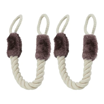 Relaxdays Rope Door Stoppers, Set of 2, 60 cm Long, Handle Blocker, Protection for Kids & Pets, Cream/Brown, fabric