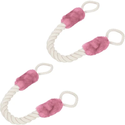 Relaxdays Rope Door Stoppers, Set of 2, 60 cm Long, Handle Blocker, Protection for Kids & Pets, Maritime, Cream/Pink