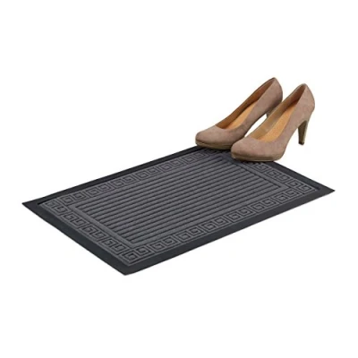 Relaxdays Rubber Doormat, Antique Pattern, Non Slip Rug for Indoors and Outdoors, 40x60 cm, Grey