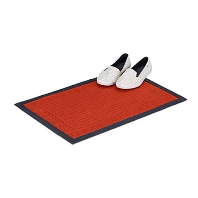 Patterned mat: Welcome your guests properly with this red mat - Surface with elegant felt contouring - Door mat for the hallway, patio, porch, basement, garage, house or apartment door Durable: This rectangular mat is robust and durable - Heated floors pose no problem at all - Can be rolled up easily to be stowed away Non-slip: Rubber on the bottom of the door mat makes it secure and prevents slipping - Can be used indoors or outdoors and withstands any weather Chic and practical: The doormat is a decorative eye-catcher for any entrance - No moisture, dirt or shoe prints enter your home - Simply beat the mat for quick cleaning Basics: D x W x H: app. 40 x 60 x 0.3 cm - Weighs only app. 0.6 kg - Anti-slip rubber mat - Contoured bottom - 3D stripes made of soft polyester felt