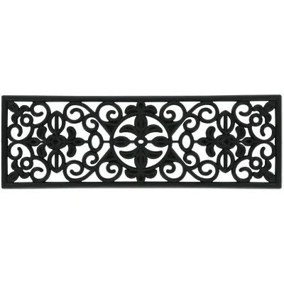 Relaxdays Rubber Step Mat, Rectangular, Indoor & Outdoor Doormat, Shoe Scrapper, 75 x 25 cm, Ornaments, Anti Slip, Black