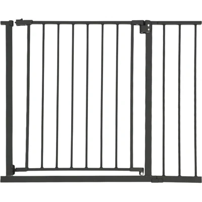 AmazonSafety: Door gate designed to protect babies, toddlers up to 24 months, and dogs at home Clamps: Black child safety gate for doorways, passages or stairs 95–100 cm, incl. extension Practical: stair gate with one-handed operation – opens and closes from both sides Assembly: Stair gate with 4 screws - Follow the included instructions for secure installation. Details: Sturdy clamp gate made of iron - Height: approx. 76 cm - Safe according to EN 1930:2011