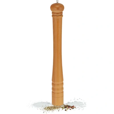 AmazonXXL size: Pepper mill for cooking and seasoning - dimensions H x D: approx. 51.5 x 6 cm Optics: Natural coloured spice mill made of wood in a classic design as a great eye-catcher on the dining table All-rounder: pepper shaker for grinding salt, pepper and other coarse and dried spices Handy: Manual salt mill with twist mechanism for easy handling - With screw cap Material: Mill with sturdy, temperature-resistant ceramic grinding mechanism for long-term use