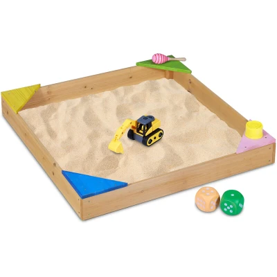 This robust sandpit is the perfect way for your children to play and express their creativity playing in the sand. Made of solid fir wood, there is nothing in the way to stop your kids from digging, shaping, and simply having fun. The four colourful seats placed on the corners of this sandpit offer a comfortable place for your children to sit and play. Thanks to the effortless and quick assembly, this sandpit can easily be placed in your garden or backyard. Notice: In order to ensure years of fun and play, the wood should treated regularly. It is also recommended to cover the sandpit with a canvas when it's not being used. Sandpit in Detail - Total Dimensions H x W x D: approx. 11.5 x 90 x 90 cm - Corner Seats W x D: approx. 14 x 20 cm - Max load capacity: 50 kg - Weight: approx. 2.4 kg - Material: Fir wood - Colour: Natural wood Sandpit for the Garden - Rectangular sandpit for older and younger children - For digging, shaping, and play in the sand - Ideal for outdoor areas like the