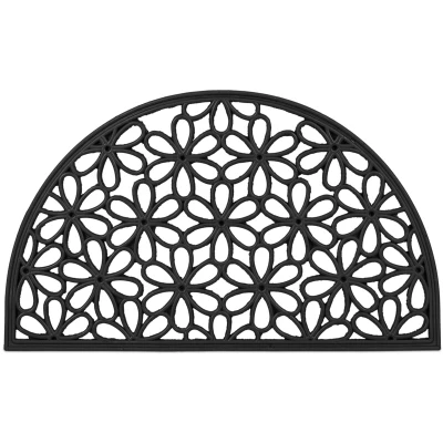 This black rubber doormat with a cute flower pattern, semicircular shape with holes for water drainage is guaranteed to keep your entrance area clean. The doormat with studded structure makes wiping off dirty shoes a piece of cake and is easy to wipe clean with water. Whether in the hallway, on the terrace or on the balcony, the practical doormat made of durable rubber can be used indoors and outdoors and stays in its original place thanks to its non-slip properties. Coir Doormat Details - Dimensions H x W x D: Approx. 1.5 x 75 x 45 cm - Weight: approx. 1.9 kg - Material: Rubber - Colour: Black Non-Slip Doormat for Doors and Backdoors - Decorative design with ornaments is beautiful and timeless- Ideal for hallways, gardens and terraces- Weatherproof in all weather conditions- Quick cleaning of shoes due to rubber studs- Robust rubber is easy to clean- Shoe soles are particularly well kept free of dirt thanks to the studded structure Included in Delivery - 1x Doormat - Decorative items