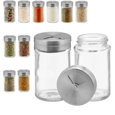 AmazonSpice storage: Spice shakers in a set of 12 - Keep your spice collection organised in the kitchen For shaking: Spice jars have a rotatable shaker lid for fine, medium and coarse sprinkling Fillable: Spice container with salt, pepper, cinnamon, paprika and much more - For dried herbs Look: Transparent jars in mix of materials - Simple, timeless design - Suitable for every household Basics: Spice jars with stainless steel lids - 5 x 8.5 cm - 90 ml each - Delivered without spices