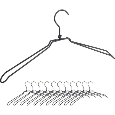 AmazonOrder: thanks to the hanger set, your wardrobe impresses with a uniform look – set of 12 pieces. Wide shoulders: thanks to the wide shoulder section, metal hangers are ideal for jackets and blazers. Appearance: clothes hanger in modern industrial design - clothes storage for home or boutique. Flexible: can be used as a shirt hanger, blouse hanger - also as a jacket hanger for heavy winter clothing. Basics: wire hanger made of black iron, dimensions (H x W x D): approx. 21.5 x 45 x 4 cm - load capacity per temple: approx. 8 kg.