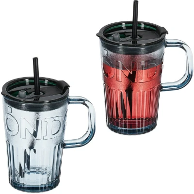 General description These Relaxdays drinking glasses come as a set of 2, featuring a removable lid and straw, making them perfect for on-the-go use, garden parties, or picnics. The glasses are designed for versatility, allowing users to drink through the straw or use the separate drinking opening in the lid, which is easy to close. The convenient handle makes it easy to enjoy hot beverages, while the glasses are dishwasher safe for easy cleaning. Technical specifications Dimensions with lid (H x W x D): approx. 13 x 13 x 8.5 cm Volume: approx. 450 ml each Weight: approx. 450 g each Material: Glass, silicone Usage Ideal for water, juice, lemonade, and cocktails Suitable for both hot and cold drinks Can be used without the lid as simple drinking glasses Other information The seals on the lids are not suitable for the dishwasher