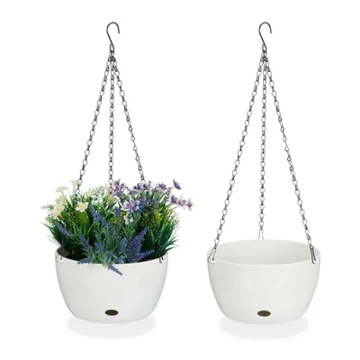 AmazonPractical: Intelligent flower pot for self-watering instead of daily watering - Ideal for holidays Self-watering: Root basin with insert creates water reservoir - Roots draw water as required Outdoor: Hanging pot with drainage hole to prevent waterlogging and rot - Excess rainwater runs off Indoor: Also ideal as a herb pot for indoor plants - Watering hole for watering after rooting Details: 2 hanging baskets in white for ornamental and decor plants - Resilient hydro pot up to 7 kg
