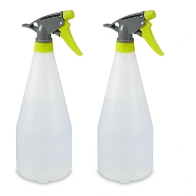 Whether for applying cleaner or spraying houseplants, in many situations we need a water spray bottle. With this set of 2 plant spray bottles, you get handy plastic sprayers for every purpose. The universal spray bottles can be filled with water, vinegar cleaner or liquid cleaning products. By turning the nozzle, you can adjust the plastic spray head from "closed" to "mist" to "jet". The plant sprayers each hold approx. 1000 ml of liquid. Spray Bottles in Detail - Dimensions H x W x D: approx. 29 x 9.5 x 11 cm each - Volume: approx. 1000 ml each - Weight: approx. 90 g each - Material: Plastic (PP & PE) - Colour: White, grey, green Refillable Water Spray Bottle in a Set - Spray bottle made of white plastic in a set of 2 - Adjustable nozzle with two spray modes - 1 litre spray bottles with scale in millilitres - Perfect for spraying plants and for plants in the germination phase - Suitable as a cleaning accessory, e.g. for cleaning windows - Useful for spritzing laundry when ironing