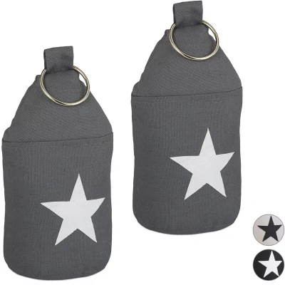 AmazonSet of 2: Dark grey floor doorstop with a decorative white star - H x D: approx. 23 x 11 cm Fabric: Cotton bumper filled with sand - Soft fabric prevents damage to your door or floor - Freestanding: Does not have to be mounted to floor or wall - Can be easily carried and repositioned Extra tall: Suitable for doors above ground level such as balcony or patio doors - Indoor use Decorative: The modern star design matches a vast array of rooms seamlessly - For indoor doors