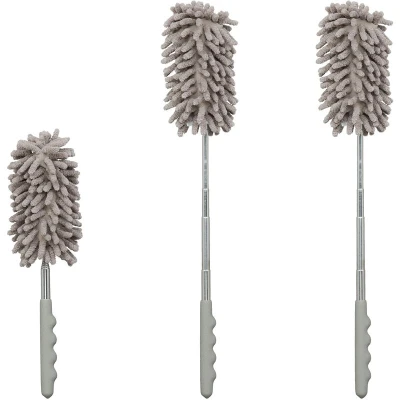 Relaxdays Set of 3 Duster, Extendable Telecopic Bar up to 77cm, Washable Microfibre, Car & Household, Dust Mop, Grey, Polyester