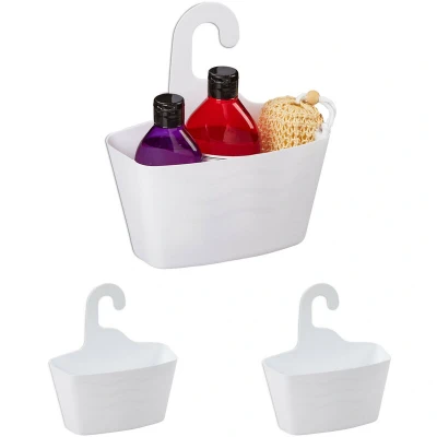 Relaxdays Set of 3 Shower Basket for Hanging, No Drilling, Plastic, Bathroom Caddy, Shelf Shampoo, Gel, Organiser, White, 25 x 23 10 cm