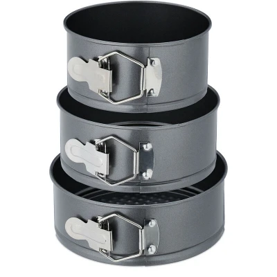 AmazonSet of 3: Round cake moulds in 3 sizes for homemade (multi-tiered) cakes, fruit cakes and much more Non-stick: Cake baking tins with non-stick coating - No sticking - Easy removal of the baked goods Robust: Leak-proof baking tins are made of sturdy stainless steel - Heat resistant up to 260 °C With clamping handle: Open the snap lock on the cake tin and simply remove the cake from the base Details: Each springform pans height: approx. 6.5 cm - Diameter approx. 14, 16 and 18 cm