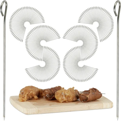 AmazonSet of 300: Stainless steel meats skewers - Reusable pins - Needles with eyelet app. 11 cm long Stainless steel: Rustproof skewers - Sturdy and food-safe - Dishwasher-safe For rolls: No more falling apart of roulades - Suitable for kebab, teriyaki and more Practical: Easy piercing of veggies and meat alike - With eyelet for easy insertion and removal Multipurpose: Trussing needles roast - Suitable as cocktail pick - Great for starters and appetisers