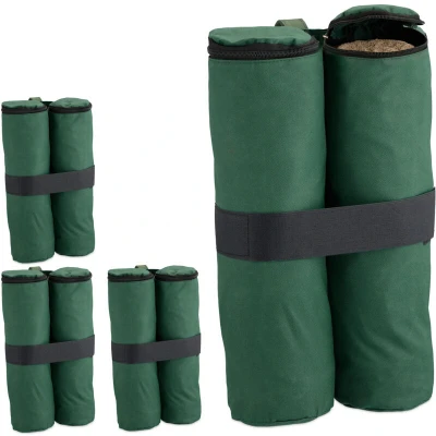 Relaxdays Set of 4 Gazebo Sandbags, Oxford Fabric, Filling with Sand, Weights for Party Tents, 40 x 42 1.5 cm, Green, Polyester