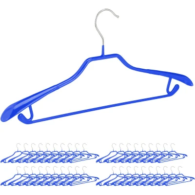 Whether at work or at home - if you want to dress smartly and professionally, you can't do without a suit or fancy dress. But unsightly wrinkles can quickly spoil these elegant outfits. With the suit hangers you can hang up your jackets and blazers neatly and without creases. This is ensured by the extra wide shoulder support of the suit hangers. There is room for the matching trousers and skirts on the bar and hooks. Thanks to the non-slip rubber coating, your clothes will not fall off. Suit hanger in detail - Dimensions H x W x D: approx. 19 x 45 x 3.5 cm - Bar W x D: approx. 32 x 0.4 cm - Weight per hanger: approx. 150 g - Material: Metal, PVC - Colour: Blue Jacket hanger with anti-slip rubber coating - Ideal for suits, costumes, jackets, blazers - Set of 40 for a uniform look in the wardrobe - Wide shoulder support for wrinkle-free hanging - Non-slip rubber coating for a secure hold - With trouser stay and hook for skirts and tank tops Included in delivery - 40x suit hangers