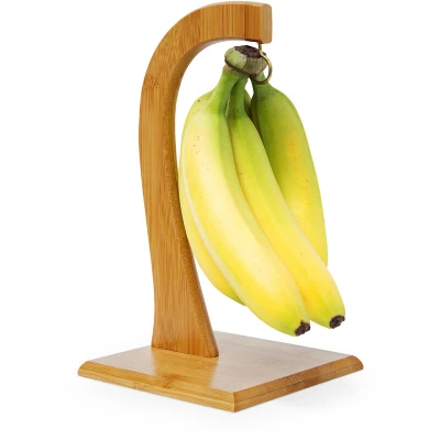 Relaxdays SHELDON Fruit And Vegetable Stand, 28.5 x 16 16, Decorative Banana Hanger, Bamboo, Natural Brown