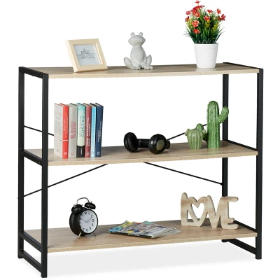 General description The Relaxdays Shelving Unit features a stylish industrial design that combines wood and metal, creating a rustic yet contemporary look. The Sonoma oak-looking shelves paired with black metal frames add a touch of elegance, making it suitable for various settings such as hallways, studies, or living rooms. Technical specifications Dimensions (H x W x D): 80 x 95 x 35 cm Weight: 12.7 kg Material: PB (particle board) and metal Color: Brown and black Maximum load per shelf: 10 kg Distance between shelves: 32 cm Installation The shelving unit can be secured to the wall using a bracket for added safety. Quick and simple self-assembly is required; assembly instructions and materials are included. Usage This versatile shelving unit is ideal for storing shoes in the hallway, books, and files in a study, or decorative items in any room. Other information Included in delivery: 1 x Bookshelf in pieces, assembly instructions, and materials. Decorative items shown in product