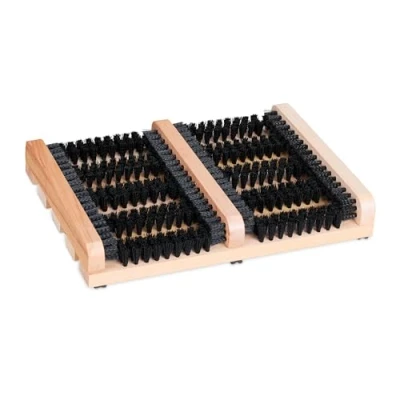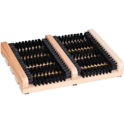 General description The Relaxdays Shoe Scraper is designed to effortlessly clean your shoes after outdoor activities such as walking your dog or gardening. Its sturdy construction and non-slip base make it a practical addition to any entrance. Technical specifications Dimensions (H x W x D): 5.5 x 36 x 26 cm Area for one shoe (W x D): 11 x 24 cm Weight: 1.1 kg Material: Poplar wood, PVC Colour: Natural, Black Usage Convenient shoe cleaning while standing without bending Sturdy brushes effectively clean the bottom and sides of shoes Ideal for use in gardens, patios, or entrances Other information Non-slip underside with three rubber struts to reduce slipping and prevent floor scratches