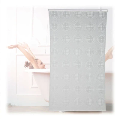 Relaxdays Shower Roller Blind, Semi Transparent Pattern, Bath Curtain, Ceiling Mount, Water Repellent, 140x240cm, White