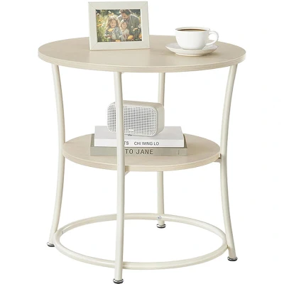 AmazonStorage: Side table with 2 shelves for books, décor, drinks, snacks – always within reach. Design: Round coffee table with wood-effect top and cream metal frame Versatile: Ideal side table by the sofa in the living room – also works as a bedside table Practical: side table with height-adjustable feet to level uneven floors Side table with 2 shelves - HxD approx. 55 x 55 cm - Load approx. 15 kg - Easy assembly