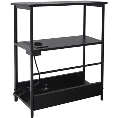 Relaxdays side table with power socket & USB ports, 2 shelves magazine rack, HWD: 58x45x18 cm, black bedside