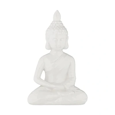 Relaxdays Sitting Buddha Figurine, 17 cm, Decorative Ornament for Living Room and Bathroom, Moisture Resistant, White, Ceramics, 17x11x7 cm
