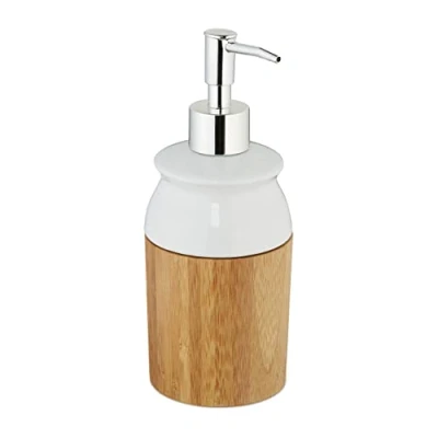 Design: The mix of bamboo and ceramic makes this soap dispenser an eye-catcher in your bathroom Dispensing: Thanks to the pump, you can withdraw the exact amount you need Capacity: Can contain 225 ml - Ideal for soap, lotion, cream and detergents Refillable: Should you ever run out of soap, you can easily refill the container Versatile: Place the modern soap dispenser in your bathroom or kitchen