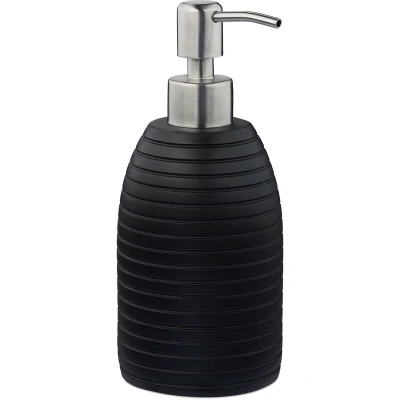 Relaxdays Soap Dispenser, 300 ml, Refillable, Bathroom, for Lotions & Shower Gel, Stainless Steel Pump, Black, Polyresin, 18 x 8