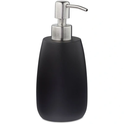 Relaxdays Soap Dispenser, 80% polyresin 20% stainless steel, Black, 18 x 7.5 9 cm