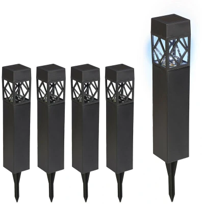 Relaxdays Solar, Set of 5, Cool White, Waterproof, Dusk Sensor, LED Garden Lighting, HWD 41 x 6 cm, Black
