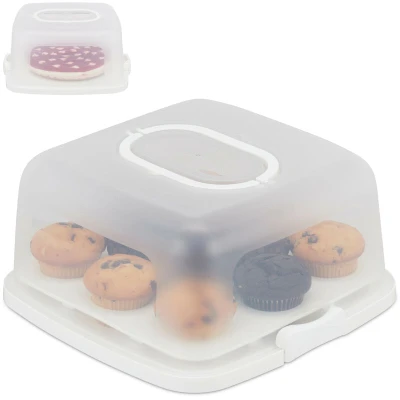 Relaxdays Square Cake Carrier, Portable, & Muffin Container, Dishwasher Safe, HWD: 16x34x32.5 cm, White/Clear