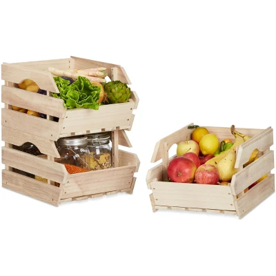 Relaxdays Stacking Wooden Boxes, Set of 3 Universal Sturdy Storage Crates, HxWxD: 20x27.5x38 cm, Natural