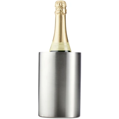 General description Enjoy a cool glass of champagne or wine on a long summer night with the Relaxdays Stainless Steel Double-Walled Bottle Cooler. This insulated wine cooler, made of durable stainless steel, keeps pre-cooled bottles fresh for longer thanks to its thick double-walled design. It is not only suitable for wine bottles but also works perfectly with water, champagne, beer, juice, and sparkling wine. The elegant design makes it a great addition to any special occasion. Technical specifications Dimensions (H x Ø): approx. 18 x 12 cm Suitable for bottles with a maximum diameter of 10 cm Material: 18/8 Stainless steel Weight: approx. 0.5 kg Color: Silver Usage To use the cooler, cool the bottle in the refrigerator to the desired temperature, then place the bottle in the cooler to keep the beverage fresh. Please note that the cooler does not have its own active cooling function. Other information Included in delivery: 1x Bottle cooler. Decorative items shown in product pictures