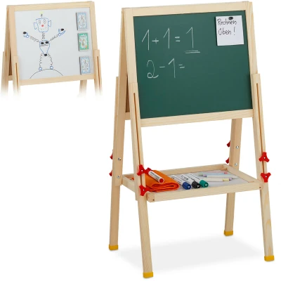 Relaxdays Standing Kids’ Blackboard, Height Adjustable & Magnetic, Wooden, Whiteboard Chalkboard, 81 104 x 45 42 cm, Natural