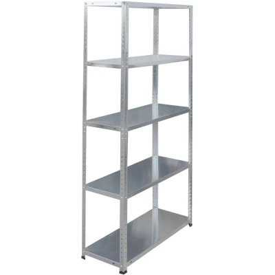 AmazonSpacious: steel shelving for garage and cellar – room for tools, car parts & more. Sturdy silver heavy-duty rack with 5 shelves - approx 40 kg per shelf - HxWxD: 150x75x30 cm Bolted: Bolt-together shelving – quick, easy assembly with instructions Practical: metal shelving with adjustable shelf heights - Safe heavy-duty unit with rounded corners Versatile: Sturdy shelf for kitchen and pantry – ideal for drink crates